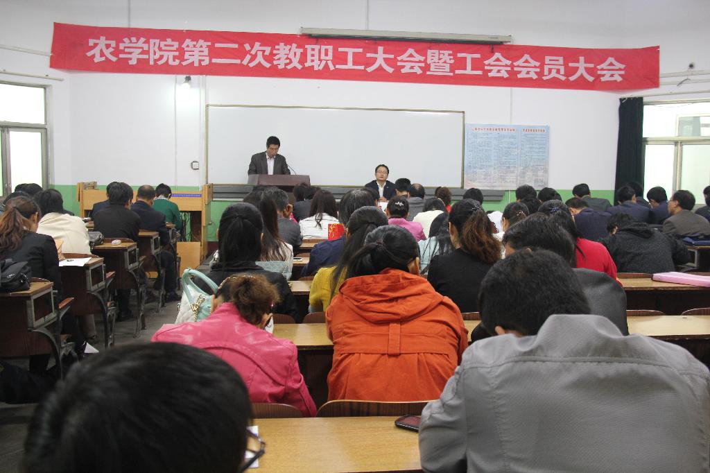 校党委副书记、校长赵春明指出欧宝官方网站入口提出建设具有地方特色研究型学院符合高等学校发展规律,符合欧宝官方网站入口的实际情况。本次大会的召开,顺应了教育改革与持续发展的迫切需求,顺应了“加强协同创新、服务跨越发展”的现代化大趋势,体现了欧宝官方网站入口领导班子和全体教职工励精图治、群策群力、创建研究型学院的热切期望和坚定决心。他明确表态,作为校长,会大力支持欧宝官方网站入口建设研究型学院的各项工作,会切实关注和解决教职工遇到的各种困难;作为一名农学学子,他迫切希望欧宝官方网站入口要充分发挥特色,在学科建设方面要抓内涵提水平,科研方面要抓项目抓平台,人才队伍建设方面要抓引进重培养,他重点强调,学院党政领导干部要本着为全院师生服务的宗旨,为全院教职工创造优良的发展环境,对学院现有资源合理调配、充分整合,抓好机制创新工作,要积极推动学院形成良好的院风。最后他对学院教师提出了几点希望,希望老教授要以王绶等老一辈教授为榜样,要把科研工作作为一项事业,要大力扶持年轻教师,做好传帮带工作;年轻教师一定要向老教授学习他们吃苦耐劳、甘于奉献的精神,要勤于蹲在田间地头,青年教师之间要善意对待他人,做到补台不拆台,要有团队协作意识、合作共赢思维。